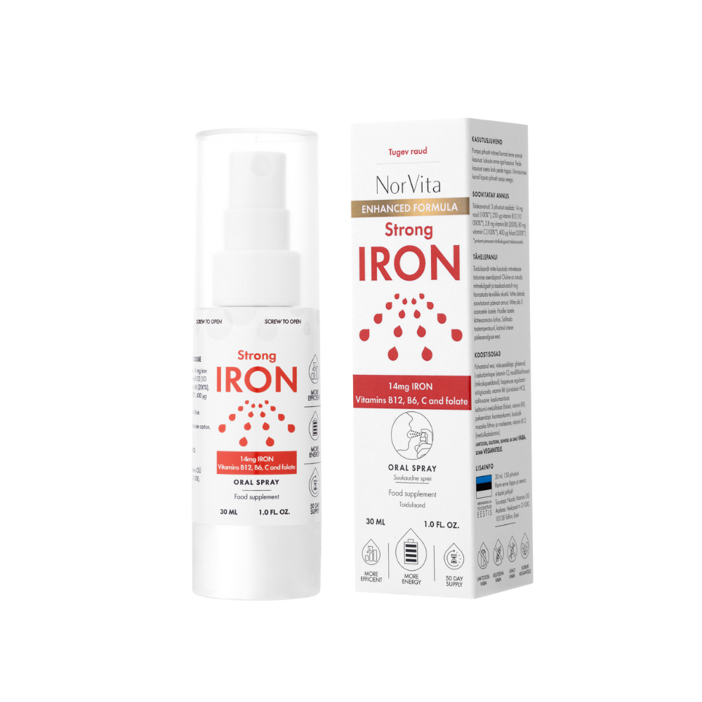 Die verbesserte Formel von mikroverkapseltem Eisen hilft dem Körper, Eisen besser aufzunehmen und reduziert die Beschwerden bei der Eisenverdauung, die bei herkömmlichen Eisenpräparaten häufig auftreten. Eisen unterstützt die normale Bildung roter Blutkörperchen und Hämoglobin und hilft beim Sauerstofftransport im Körper. Bei Blutarmut oder Eisenmangel kann es daher zu ständiger Müdigkeit und Blässe kommen. Durch die Einnahme eines Eisen-Nahrungsergänzungsmittels können Sie Müdigkeit vorbeugen, sich zusätzliche Energie verschaffen und das Immunsystem unterstützen. Zusätzlich zu Eisen haben wir dem Nahrungsergänzungsmittel die Vitamine B12, B6 und C hinzugefügt. Vitamin B12 ist für die Bildung roter Blutkörperchen unerlässlich und Vitamin B6 hilft bei der Umwandlung von Eisen in Hämoglobin. Vitamin C spielt eine Schlüsselrolle für eine bessere Eisenaufnahme. Ein Organismus, der Eisen von Natur aus nicht gut aufnimmt, profitiert von mikroverkapseltem Eisen in Form eines Sprays, das die Eisenaufnahme unterstützt.